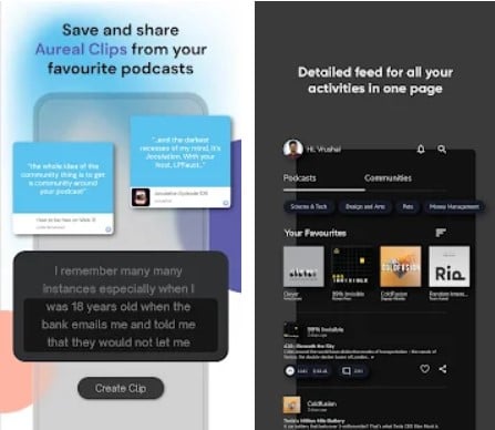 - Quickly save and share Aureal Clips from your favorite podcasts