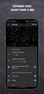 Even though you can’t choose the picture, you can still customize the image you will see on the screen. For instance, you can choose the number of particles and their size.
