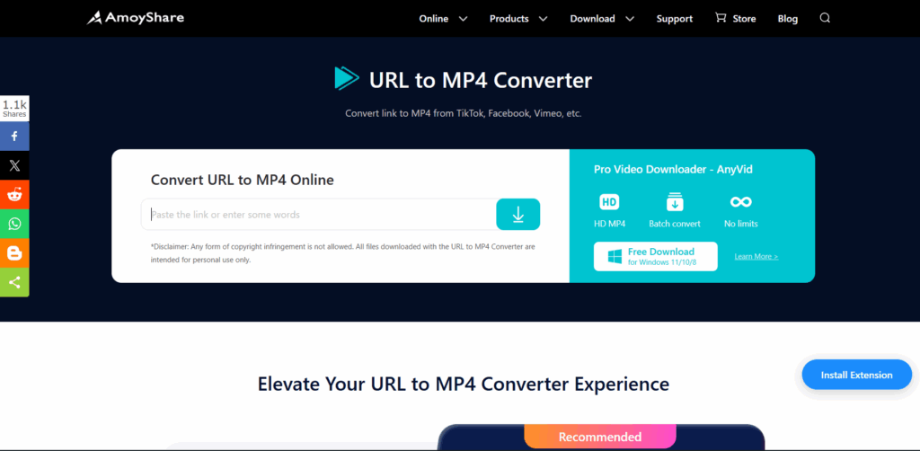 If you’ve ever wanted to save a video from TikTok, Facebook, Vimeo, or another website, AmoyShare’s URL to MP4 Converter is a helpful online tool to try. It lets you convert video links into MP4 files with just a few clicks—no installation or technical skills required.