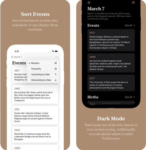 First of all, we would like to mention that Historico does not take up much storage space – it weighs just 3,2MB. So, you will not have to waste too much time on the installation process. When you open the app, you can easily select any date and discover what events happened that day.