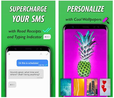 Another representative of alternative messengers for receiving SMS for Android. Here you can put any picture or photo of yours as a background, change the color theme, emoji style, and font color. Just like in Textra, the color of the indicator and the notification icon can be changed. To install a specific theme, you need to select it from the store inside the app. Most of the themes are free and their set is enough to roam in the customization of the messenger.